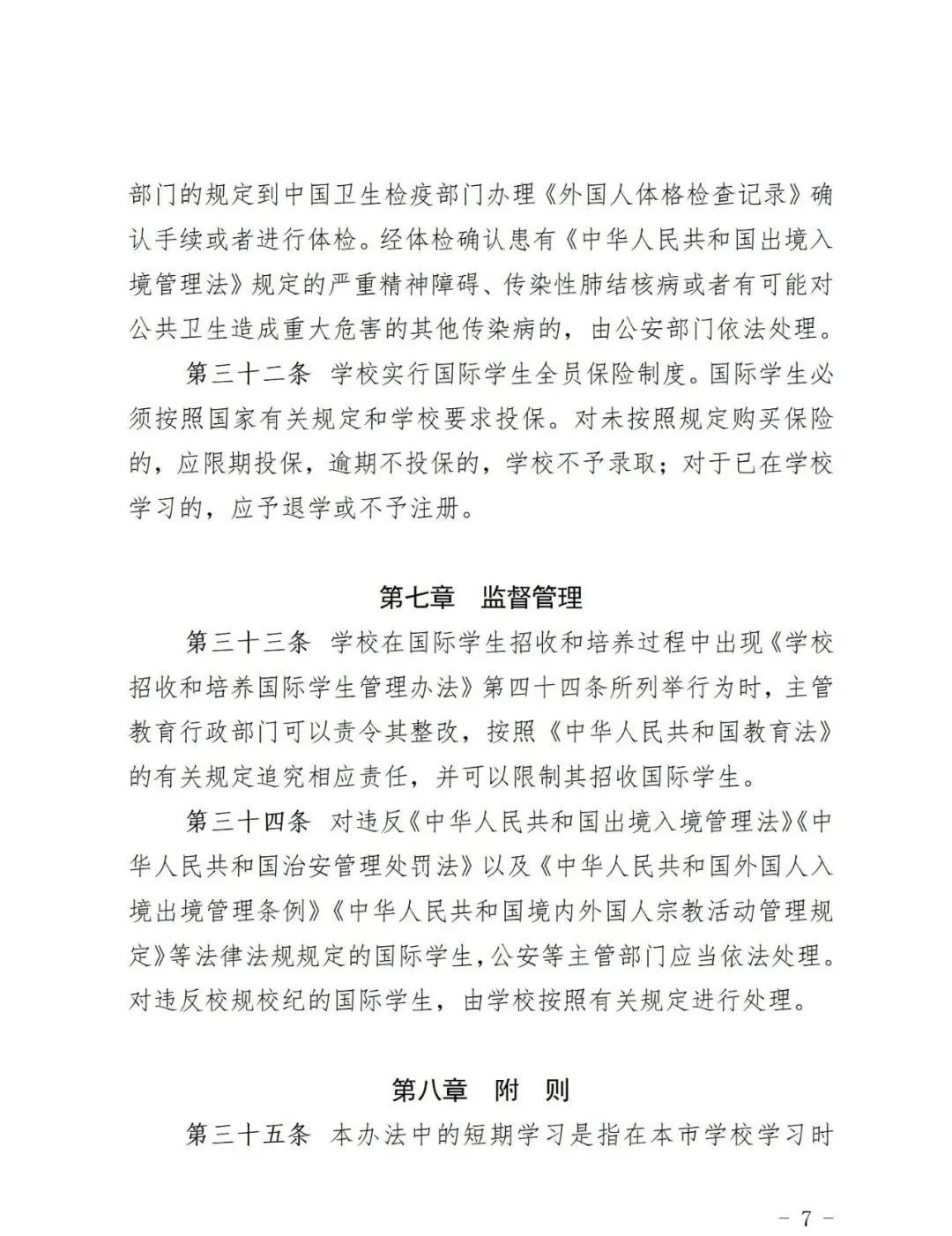 学校参照本市中国学生学籍管理办法开展国际学生学籍管理工作,及时为接受学历教育的国际学生办理学籍,并根据国家和本市有关规定为国际学生颁发学历证书或其他学业证书。学校对国际学生做出退学处理或者开除学籍处分的,应当按照法律法规规定及时向所在地公安机关出入境管理机构报告,并按照本市有关规定进行备案。
