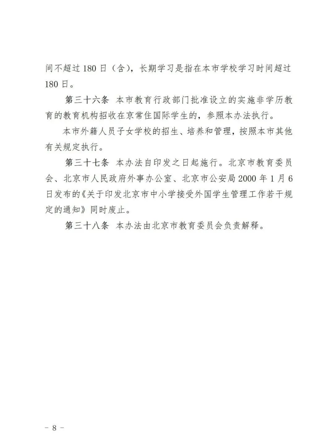 本办法自印发之日起施行。2000年1月6日发布的《关于印发北京市中小学接受外国学生管理工作若干规定的通知》同时废止。