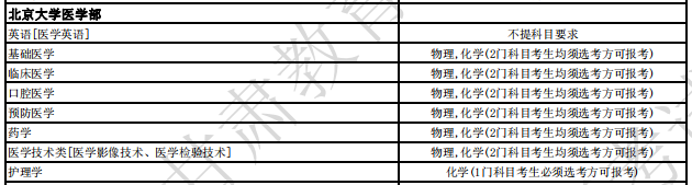 | 北京大学医学部 | 医学技术类 | 医学影像技术、医学检验技术 | 本科 | 物理,化学(2门科目考生均须选考方可报考) | |