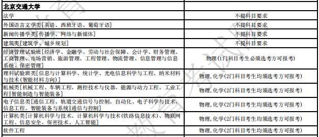 北京交通大学2024年拟招生专业选考科目要求