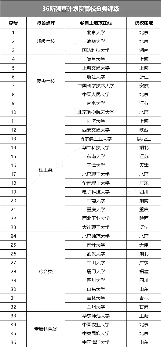 超级牛校包含了清华大学、北京大学和国防科技大学3所高校。
