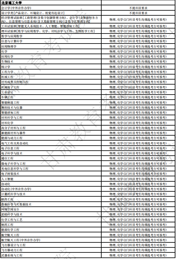 | 10007 | 北京理工大学 | 安全工程 | 本科 | 物理,化学(2门科目考生均须选考方可报考) | ||