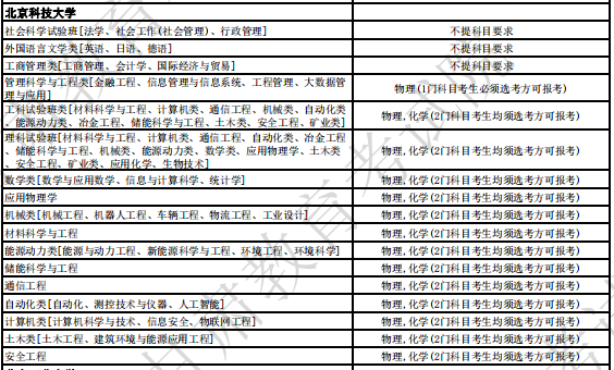 | 10008 | 北京科技大学 | 安全工程 | 本科 | 物理,化学(2门科目考生均须选考方可报考) | ||