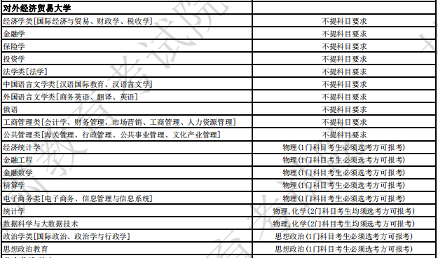 | 对外经济贸易大学 | 经济学类 | 国际经济与贸易、财政学、税收学 | 本科 | 不提科目要求 | |