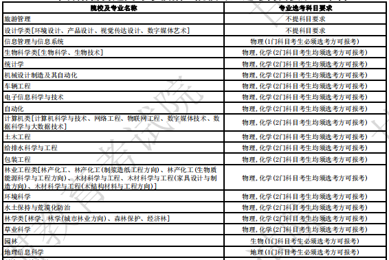 北京林业大学2024年拟在湖南招生专业选考科目要求