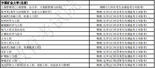| 中国矿业大学(北京) | 工业工程 | 本科 | 物理,化学(2门科目考生均须选考方可报考) |
