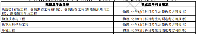 | 中国地质大学(北京) | 地质类 | 石油工程、资源勘查工程(能源)、资源勘查工程(新能源地质与工程)、新能源科学与工程 | 本科 | 物理,化学(2门科目考生均须选考方可报考) | |
