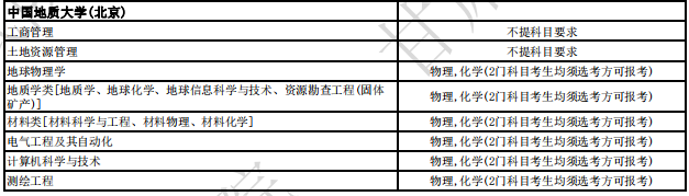 | 中国地质大学(北京) | 地质工程 | 本科 | 物理,化学(2门科目考生均须选考方可报考) | ||