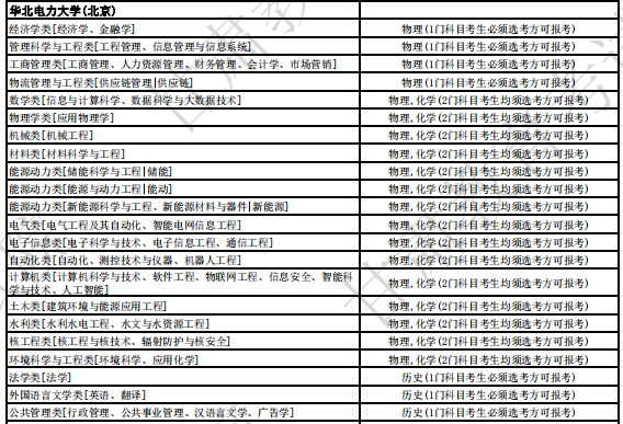 | 华北电力大学(北京) | 电气类 | 电气工程及其自动化、智能电网信息工程 | 本科 | 物理,化学(2门科目考生均须选考方可报考) | |
