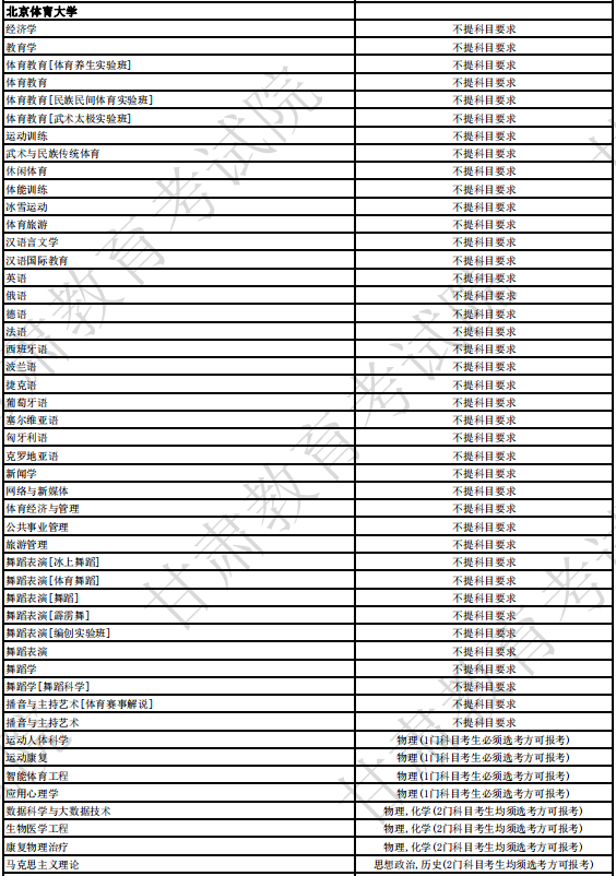 | 北京体育大学 | 运动人体科学 | 本科 | 物理(1门科目考生必须选考方可报考) | ||