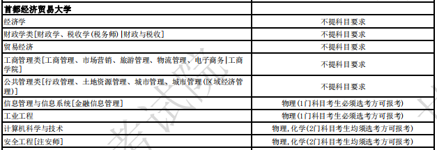 首都经济贸易大学2024年拟招生专业选考科目要求