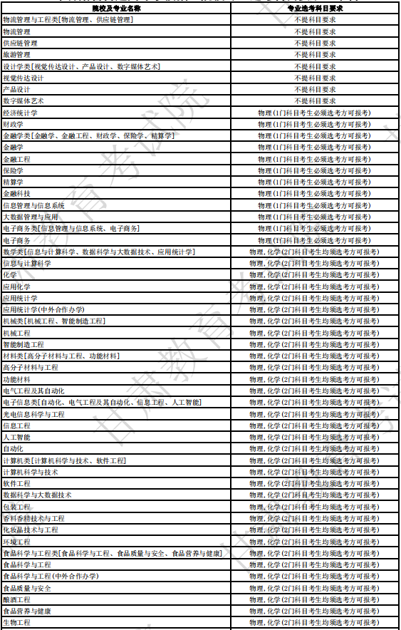 北京工商大学2024年拟在甘肃招生专业选考科目要求