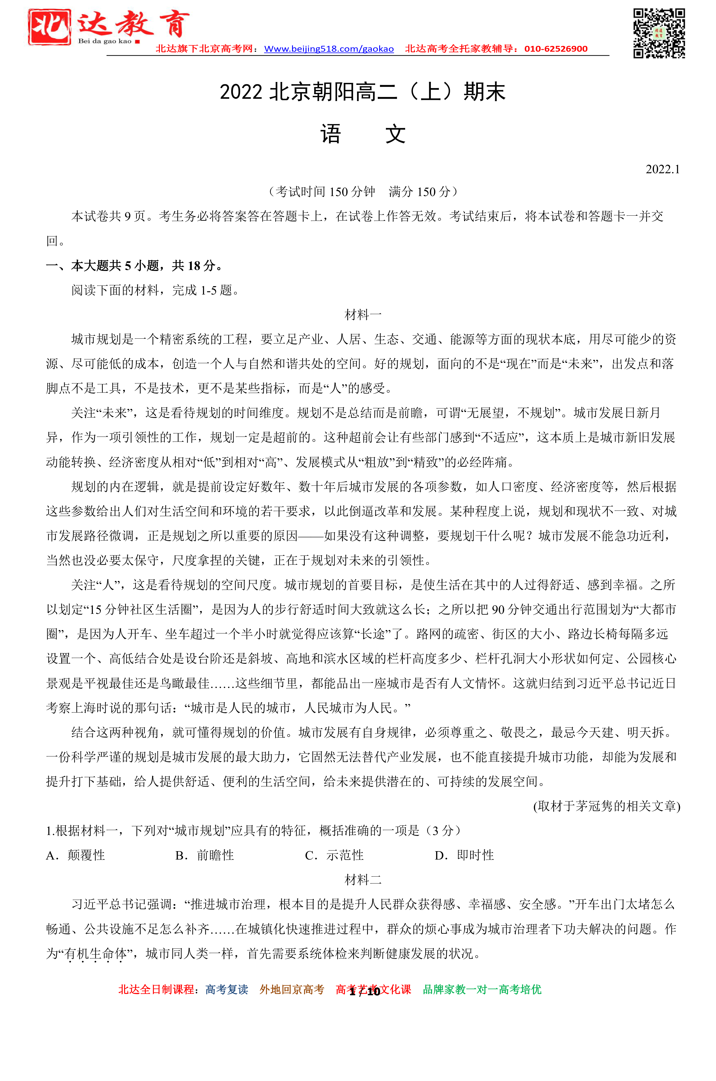 北京各区高二上学期期末考试时间已确定为1月12日-14日,北京各区2022年高二上学期期末考试结束之后,admw360教育教研组将整理相关试题,同学们可以直接下载相关试题及答案。