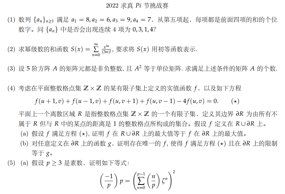 admw360高考复读学校整理了2022年清华大学求真pi节的试题,供大家参考!