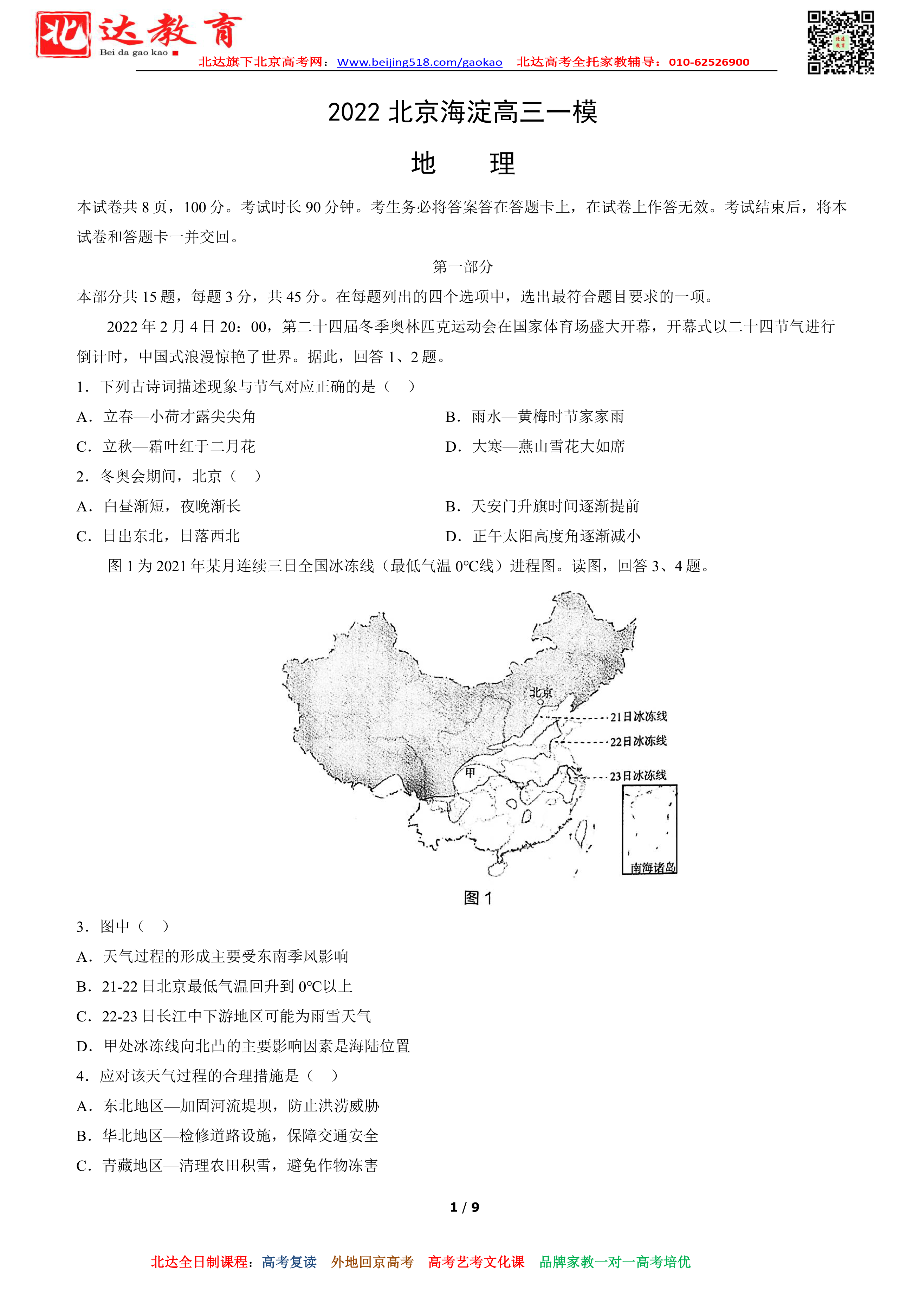 相关推荐:北京各区2021-2022学年高三一模试题及答案汇总