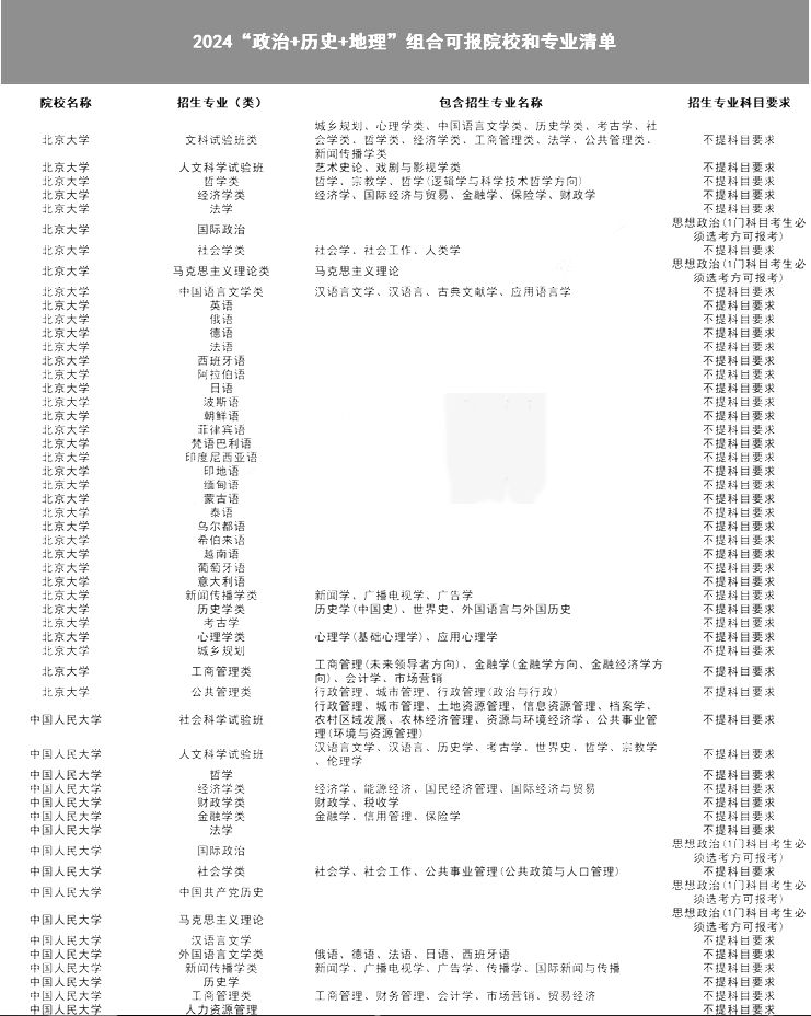 近日,北京admw360教研组为大家整理分享了政治+历史+地理选科组合可报北京高校和专业清单,需要的家长和同学赶紧保存吧。