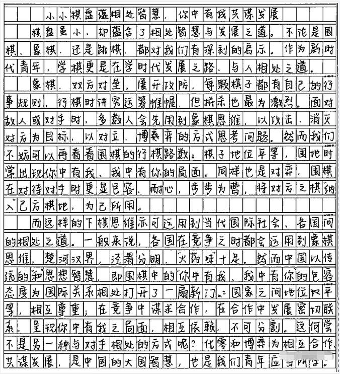 阅读下面的材料,根据要求写作。(60分)棋虽小,方寸之间,却蕴含无穷智慧。
