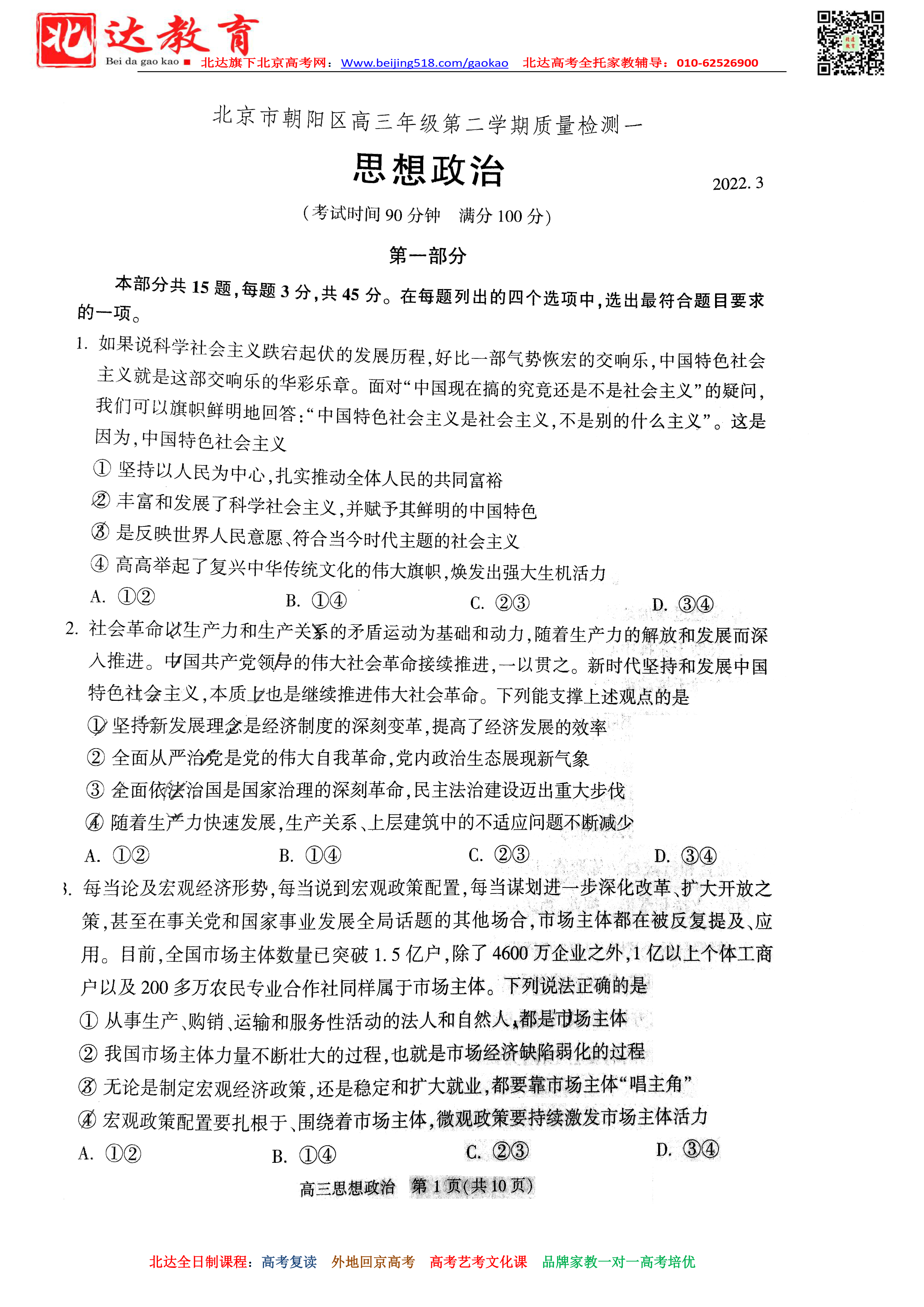 首页 taptap点点 北京朝阳区2021-2022学年高三一模政治试题