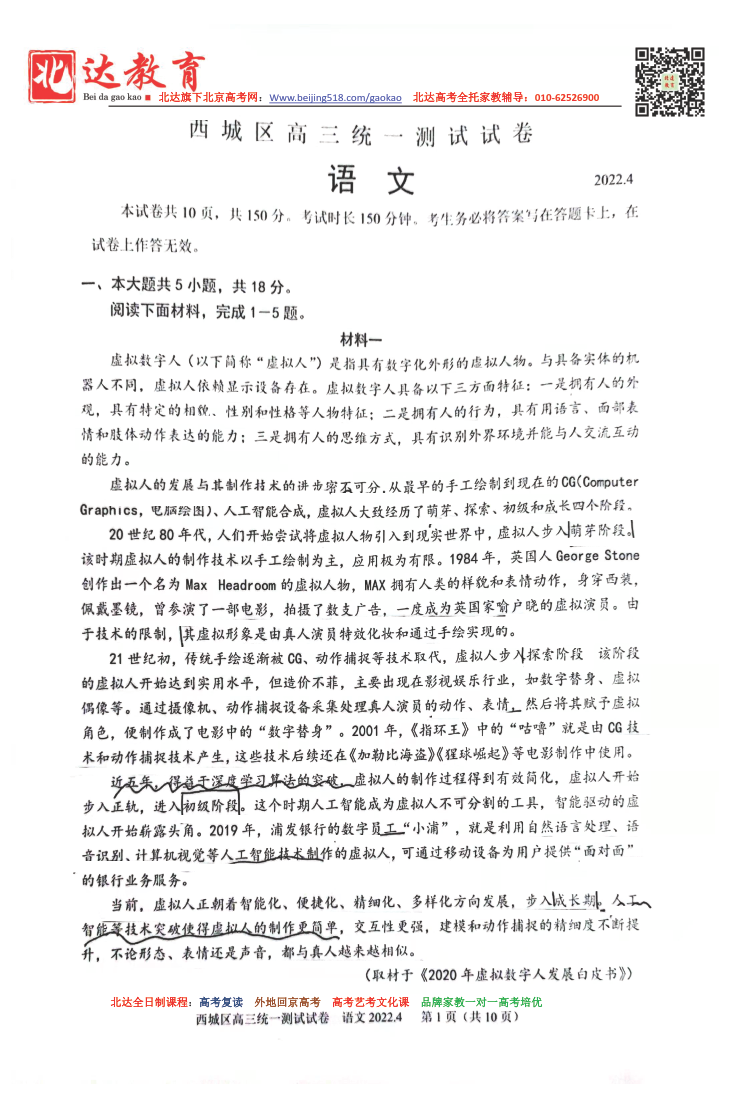 根据安排,3月28日-30日,2022年北京西城区举行高三一模考试,一模在形式和题量上更接近高考,因此同学们要格外重视,为了方便同学们下载复习,北京高考复读学校跟进相关试题,详情如下。