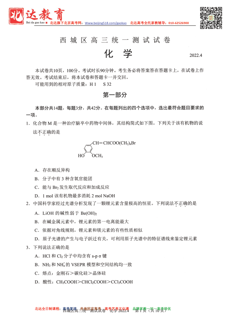 首页 taptap点点 北京西城区2021-2022学年高三一模化学试题及答案