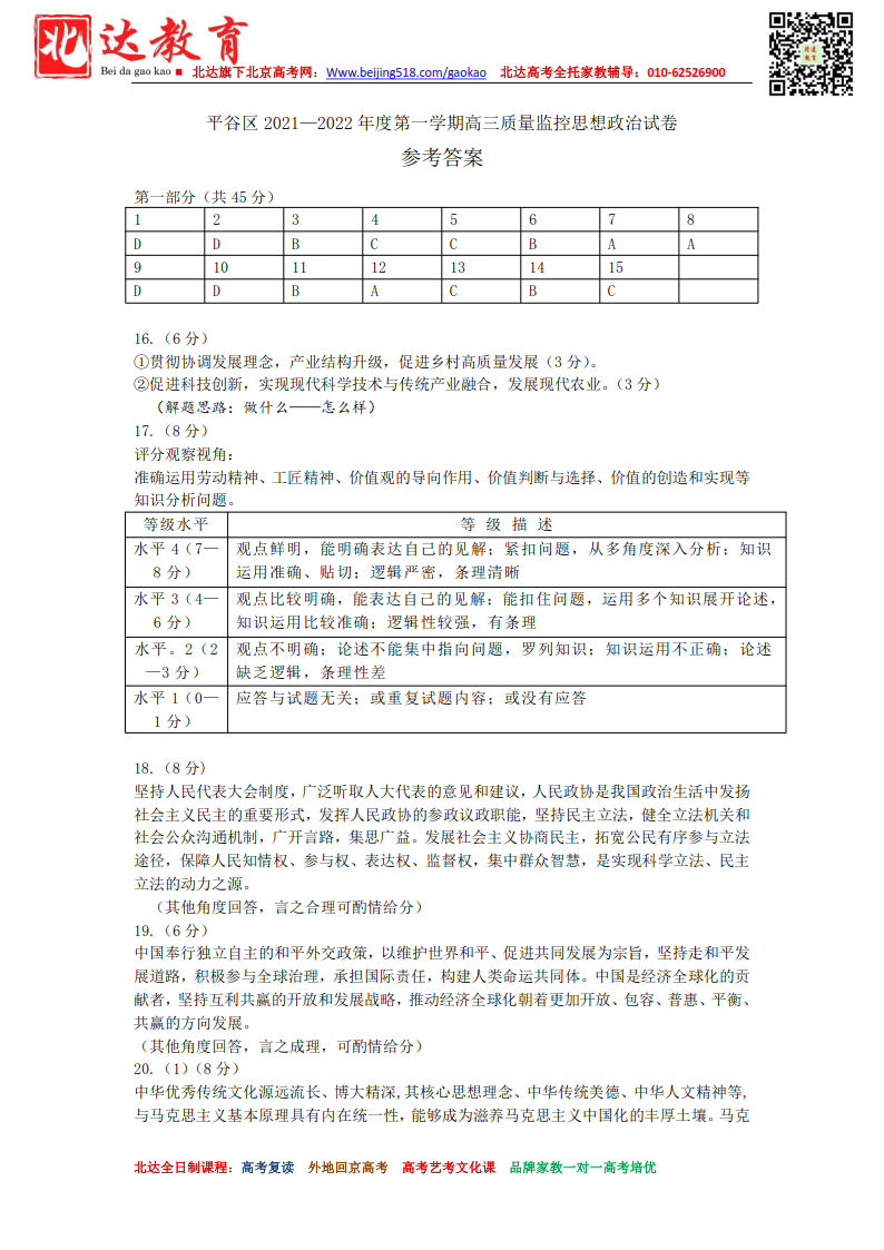 首页 taptap点点 北京平谷区2021-2022学年高三一模政治试题答案