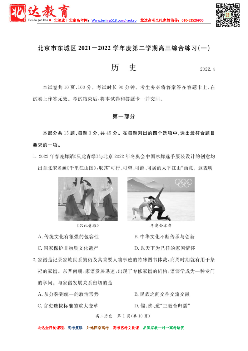 首页 taptap点点 北京东城区2021-2022学年高三一模历史试题