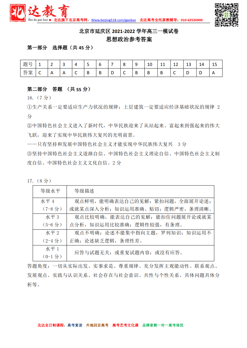 首页 taptap点点 北京延庆区2021-2022学年高三一模政治试题答案