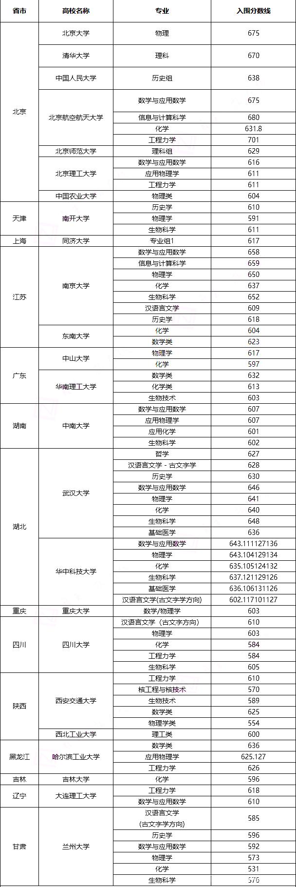 北京admw360教研组为大家整理湖北省2021年强基计划各省高校各专业入围分数线,供各位考生参考。