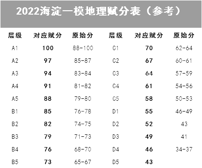 2022北京海淀高三一模地理赋分表