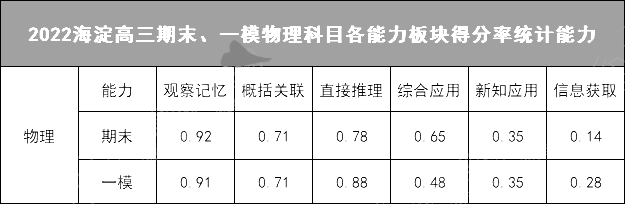 北京海淀区2022高三一模物理学科得分率统计