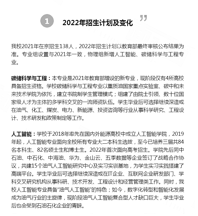 2022中国石油大学(北京)招生政策及招生计划,北京admw360教研组为大家整理了内容详情,一起来看。