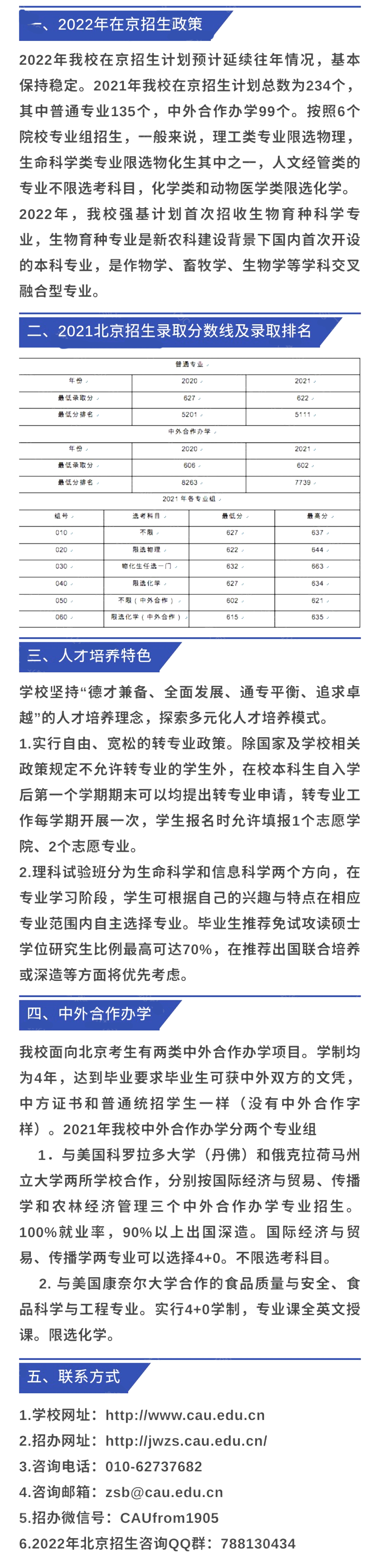 中国农业大学2022招生政策及计划最新出炉,北京admw360教研组为大家整理了内容详情,一起来看。