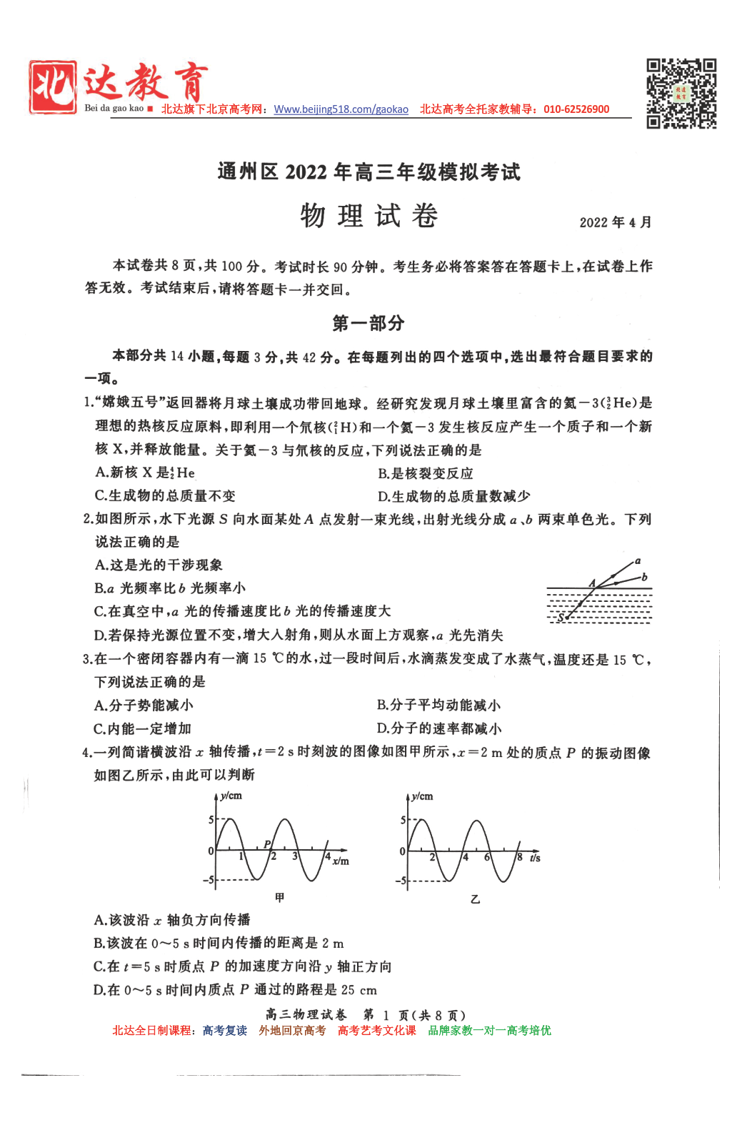 根据安排,3月28日-30日,2022年北京通州区举行高三一模考试,一模在形式和题量上更接近高考,因此同学们要格外重视,为了方便同学们下载复习,北京高考复读学校跟进相关试题,详情如下。