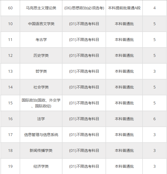 | 生物科学类 | 普通类 | 7 | 物理、化学、生物任选一门 |