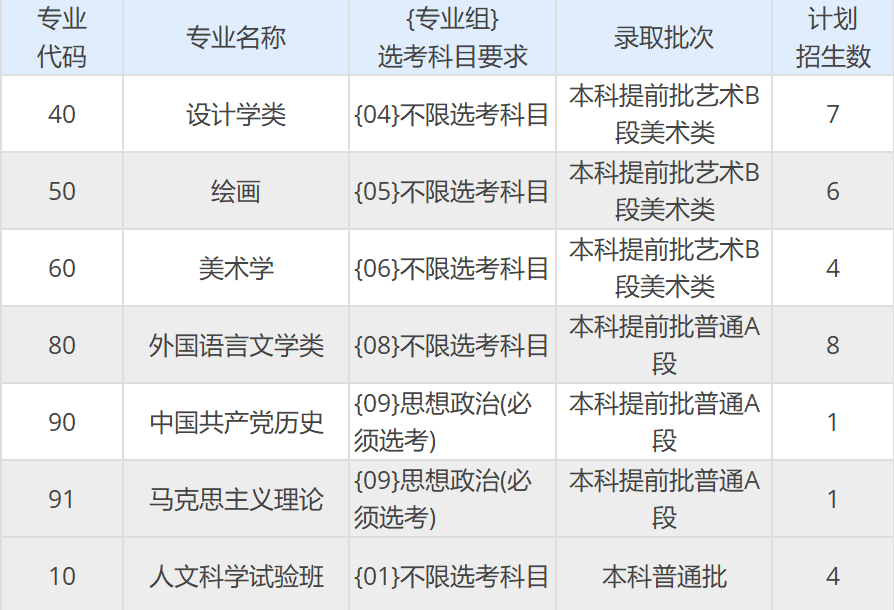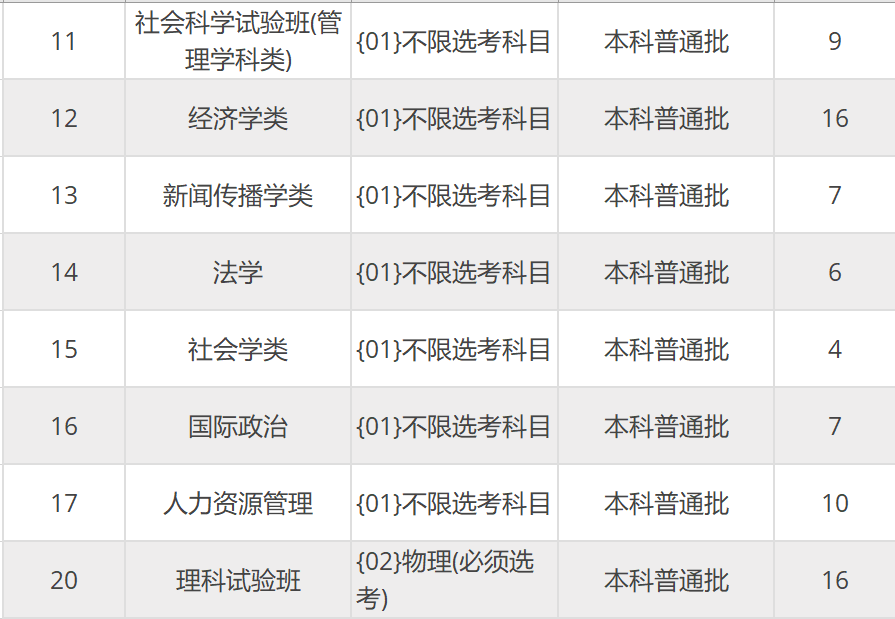 | 专业 | 类型 | 计划数 | 选考科目 |