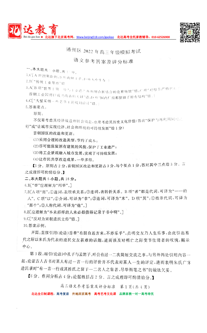 首页 taptap点点 北京通州区2021-2022学年高三一模语文试题答案