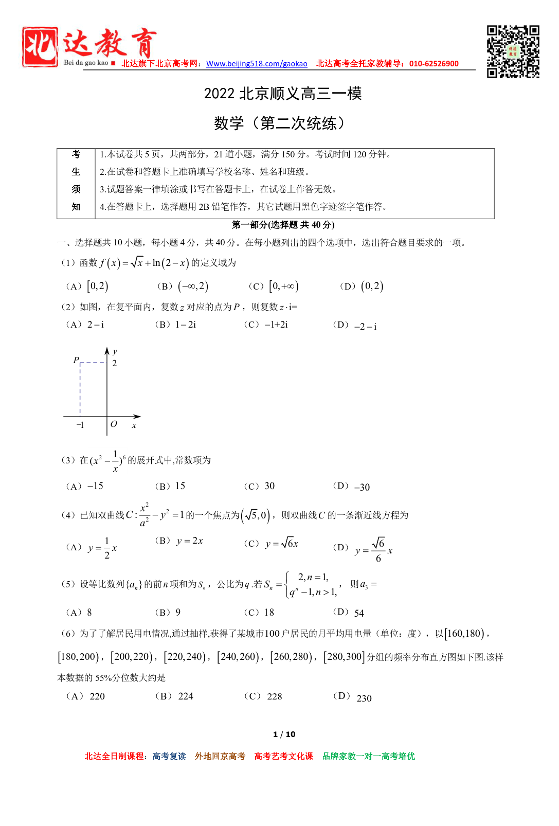 根据安排,3月28日-30日,2022年北京顺义区举行高三一模考试,一模在形式和题量上更接近高考,因此同学们要格外重视,为了方便同学们下载复习,北京高考复读学校跟进相关试题,详情如下。