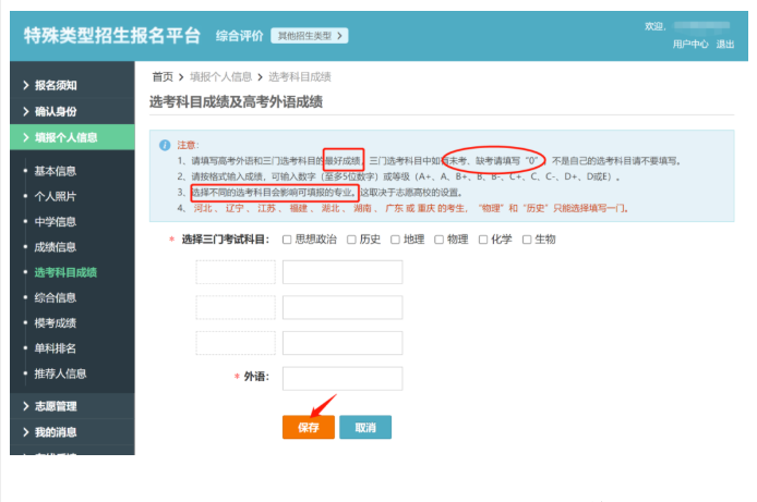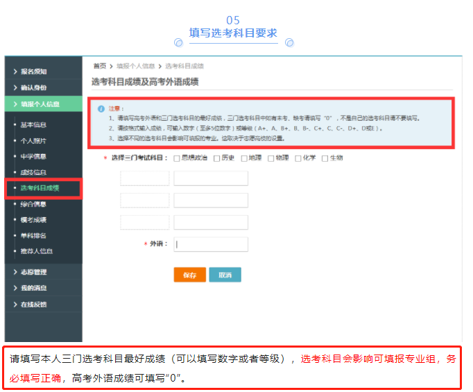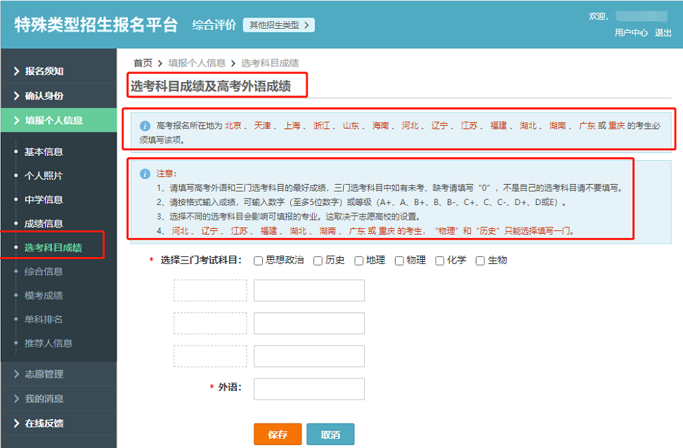 2、填写高考外语和三门选考科目的最好成绩