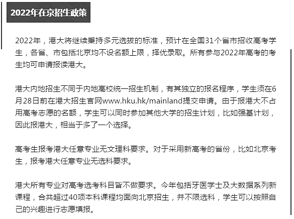2022年香港大学招生政策及计划发布,北京admw360教研组第一时间为大家整理了详细内容,一起来看。
