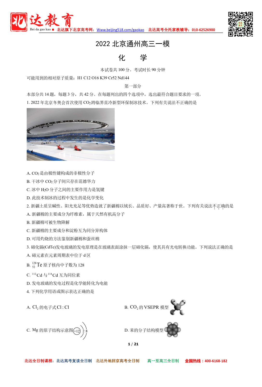 首页 taptap点点 北京通州区2021-2022学年高三一模化学试题及答案