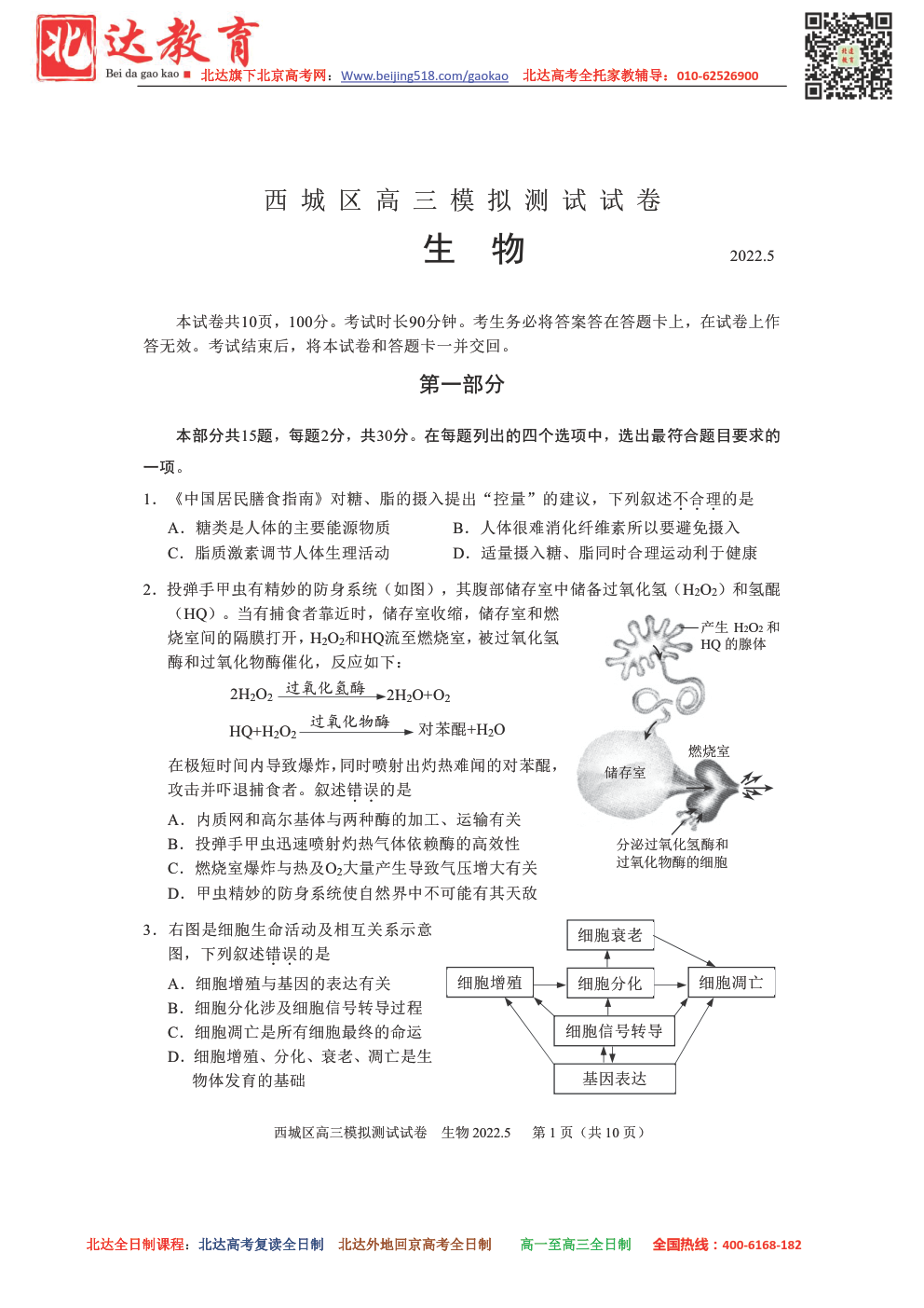 2022年北京西城区高三二模考试已开始,二模在形式和题量上更接近高考,因此同学们要格外重视,为了方便同学们下载复习,北京高考复读学校跟进相关试题,详情如下。