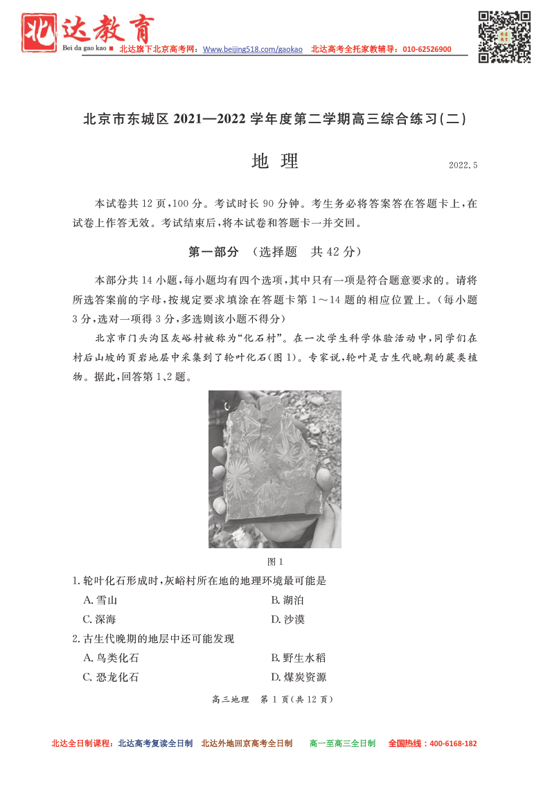 首页 taptap点点 北京东城区2021-2022学年高三二模地理试题及答案