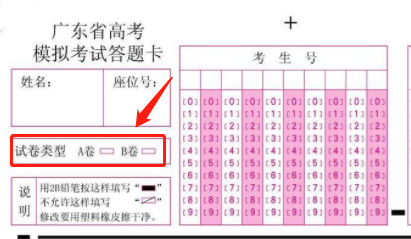 一般情况下,答题卡会显示【试卷类型】,考生需要根据自己领到的试卷类型,如实在试卷类型中填涂【A】或者【B】。