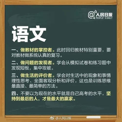 语文:重选择,选择分值大;重主观答题思路总结,其实不是很难;重作文,素材积累要有深度。
