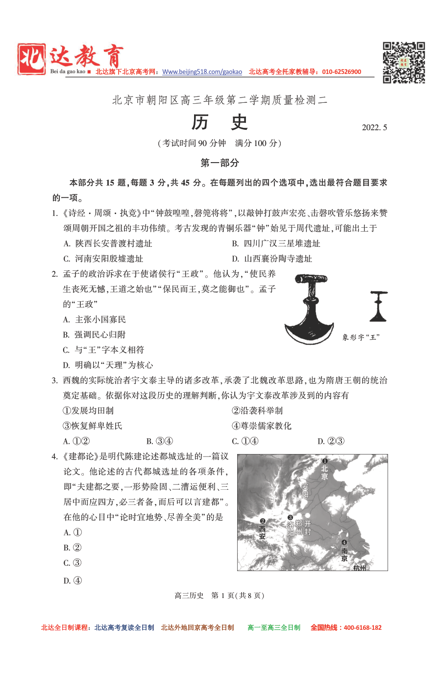 北京朝阳区2021-2022学年高三二模历史试题及答案