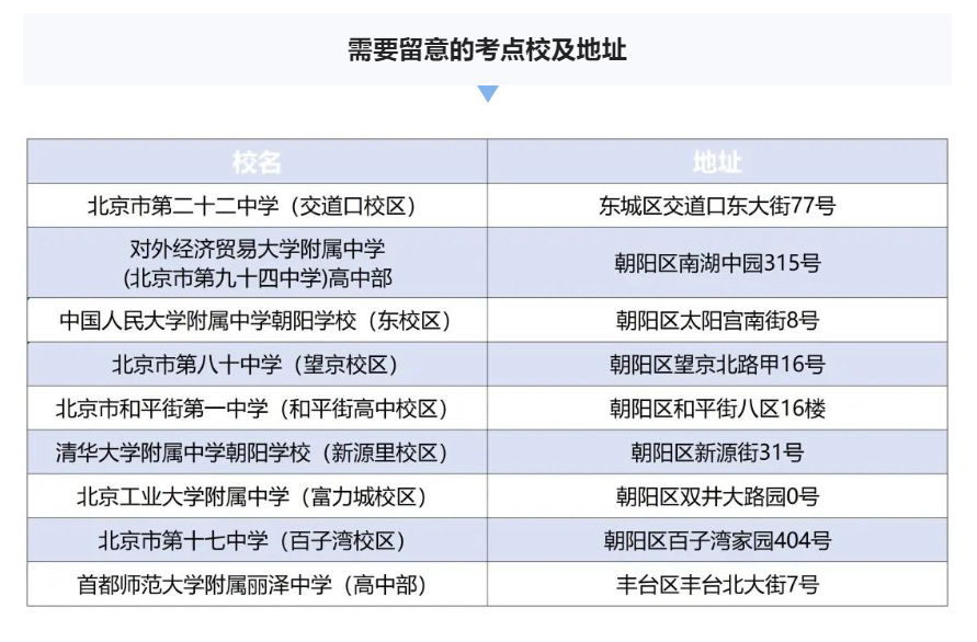 北京教育考试院发布易混淆易走错考点校,考生需看清准考证