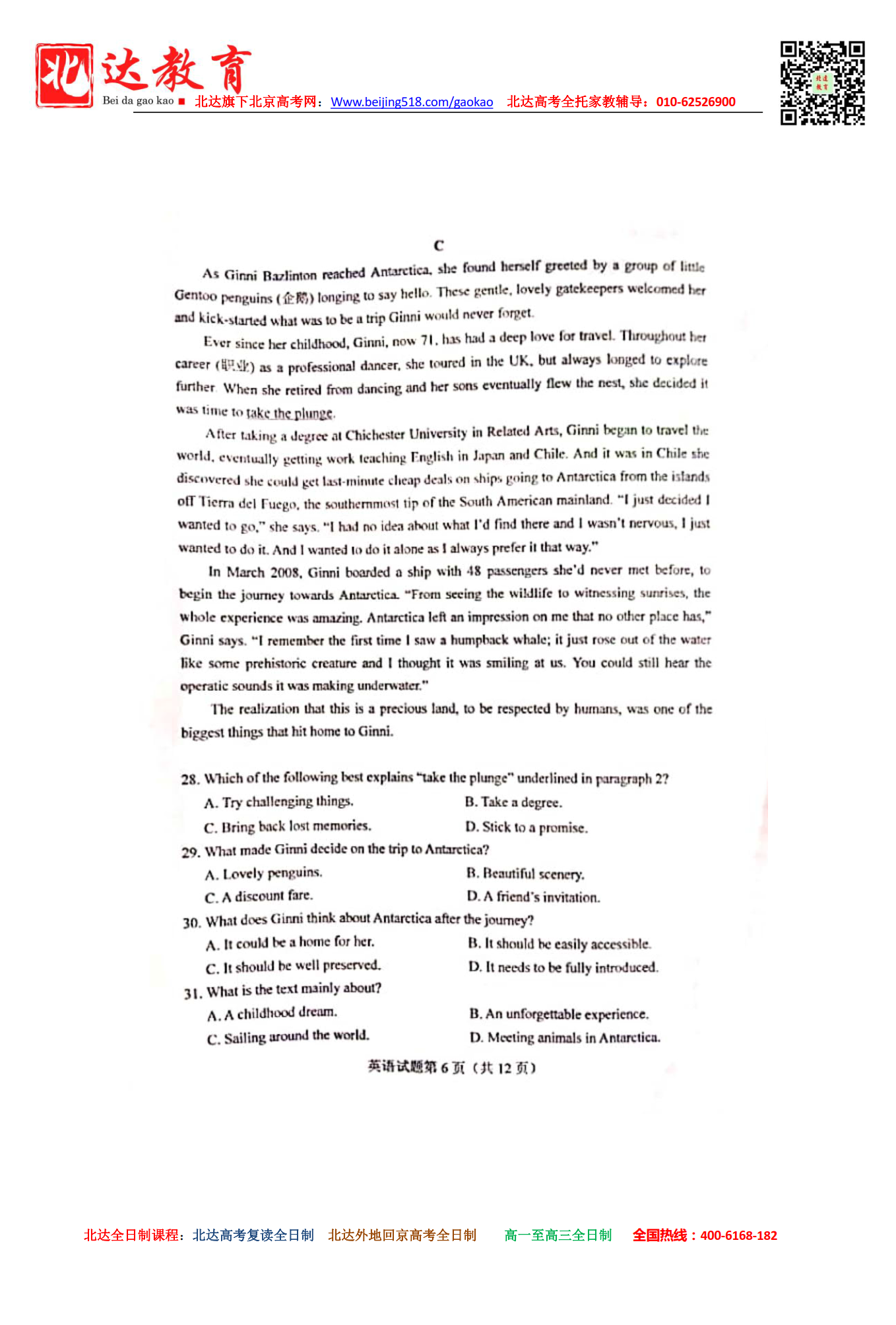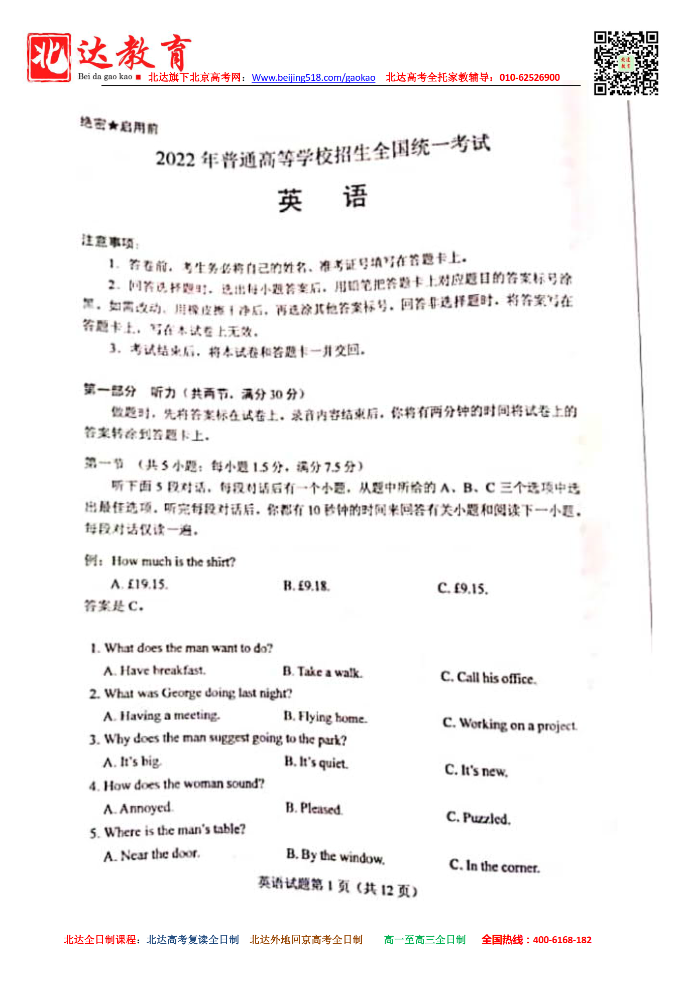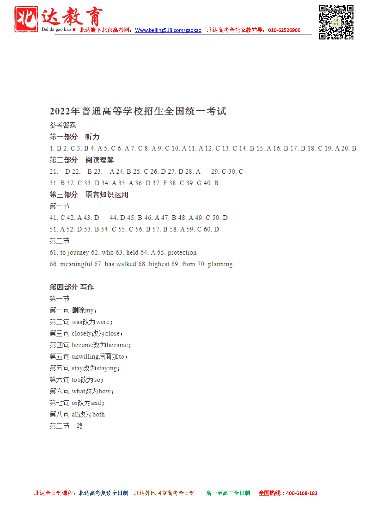 北京admw360教研组为大家整理了2022年高考(全国甲卷)英语试题及答案,希望对大家有所帮助。