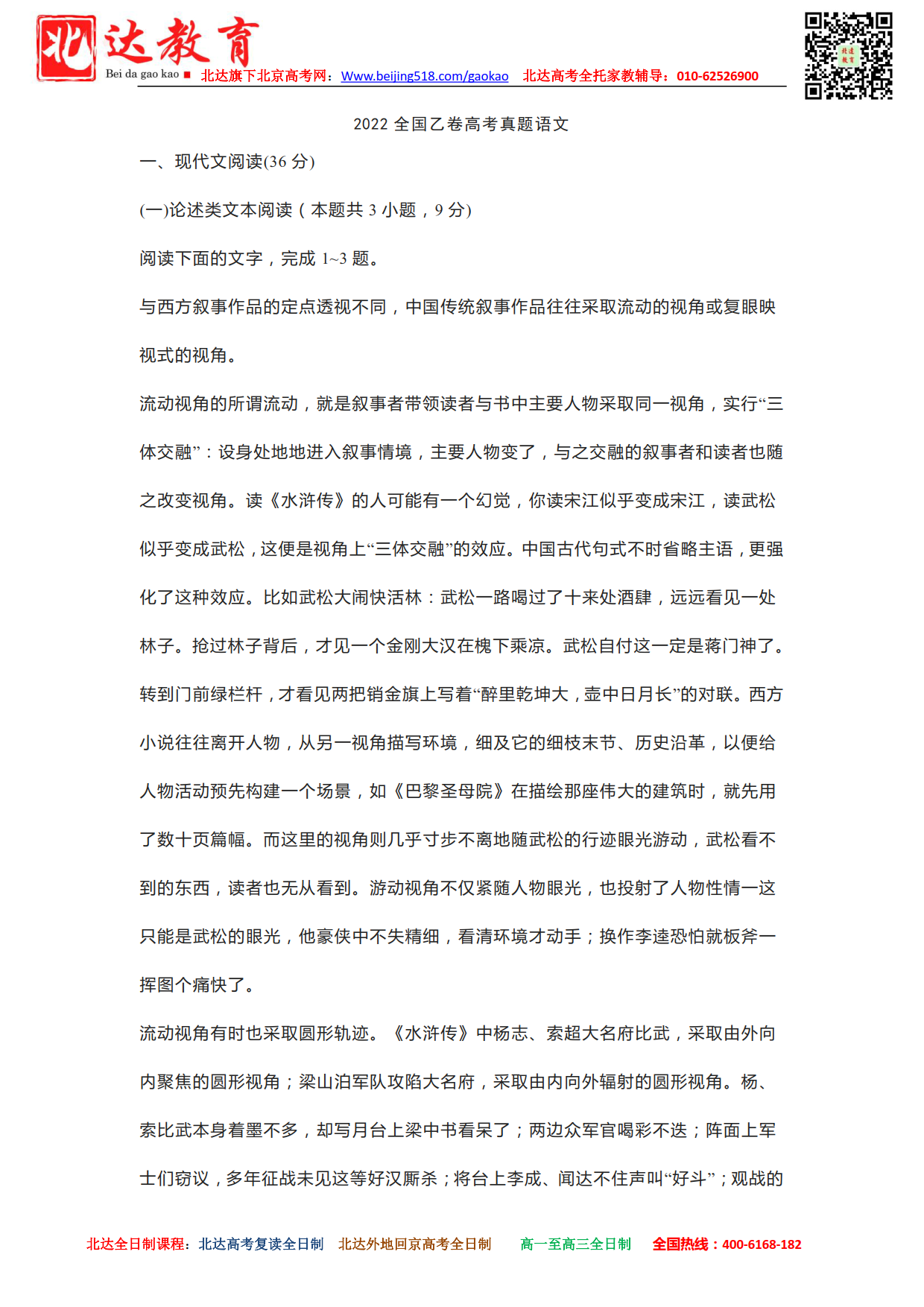 北京admw360教研组为大家整理了2022年高考(全国乙卷)语文试题及答案解析,希望对大家有所帮助。