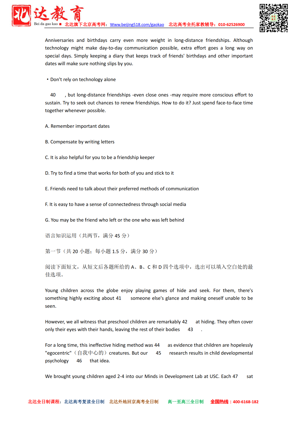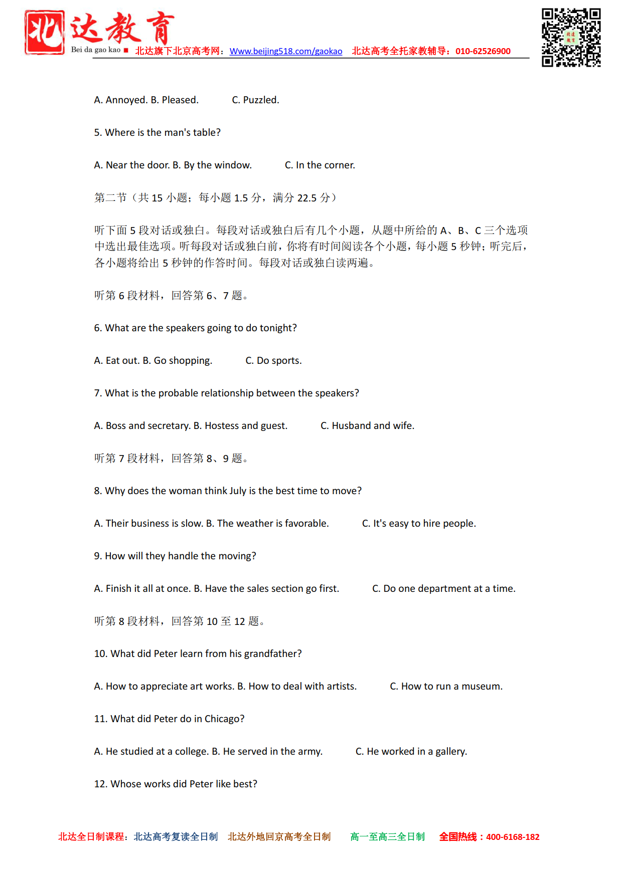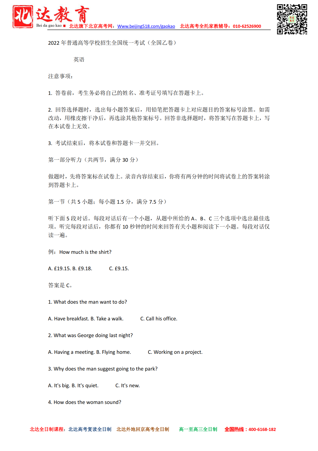 北京admw360教研组为大家整理了2022年高考(全国乙卷)英语试题及答案解析,希望对大家有所帮助。