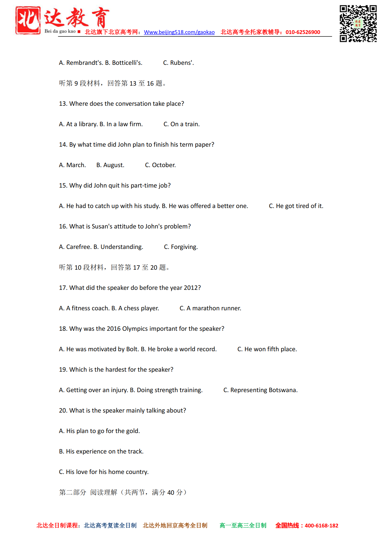 ★招生对象:京籍全日制:高复生,京籍回京,高一至高二全日制
